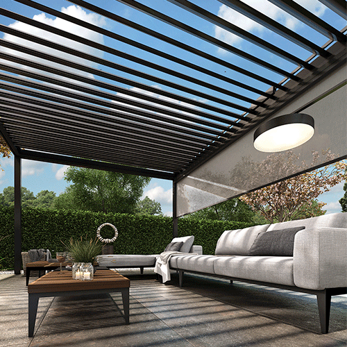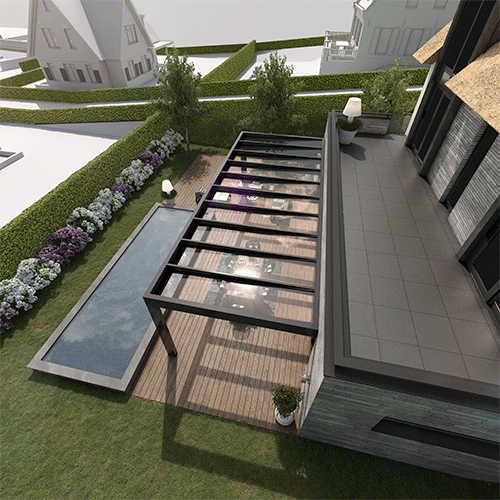 Bij de Pallazzo Sqope kunt u kiezen voor een vrijstaande of aangebouwde overkapping. Door uw wensen en de innovatieve technologieën is het mogelijk om een vrije overkapping van 7 meter te realiseren. Hierdoor bent u vrij om de overkapping in te richten zonder belemmeringen en behoudt u het onbelemmerde uitzicht.