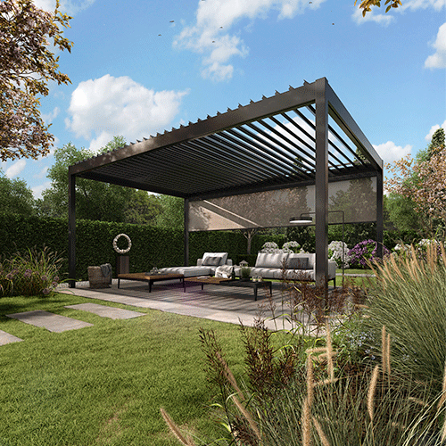 De lamellen overkapping van de Pallazzo Lounge bestaat uit kantelbare aluminium lamellen waarmee u zelf de lichtinval kunt bepalen. Er is naast de indrukwekkende uitstraling ook rekening gehouden met de gebruiksvriendelijkheid. Zo kunt u door de eenvoudige bediening in een handomdraai een volmaakt lichtinval creëren. Om weersinvloeden zoveel mogelijk onder controle te houden, zijn zo min mogelijk kunststoffen gebruikt.